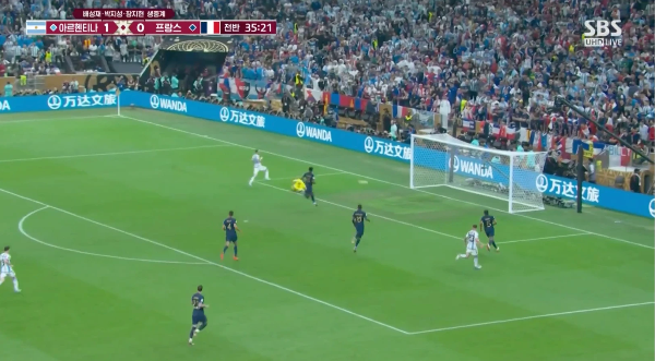전반 35분 아르헨티나 팀은 무서운 패싱력으로 골대로 돌진하며 알렉시스 맥알리스트의 택배 패스를 받은 디마리아가 골을 성공시켜 2-0으로 앞서갔습니다.